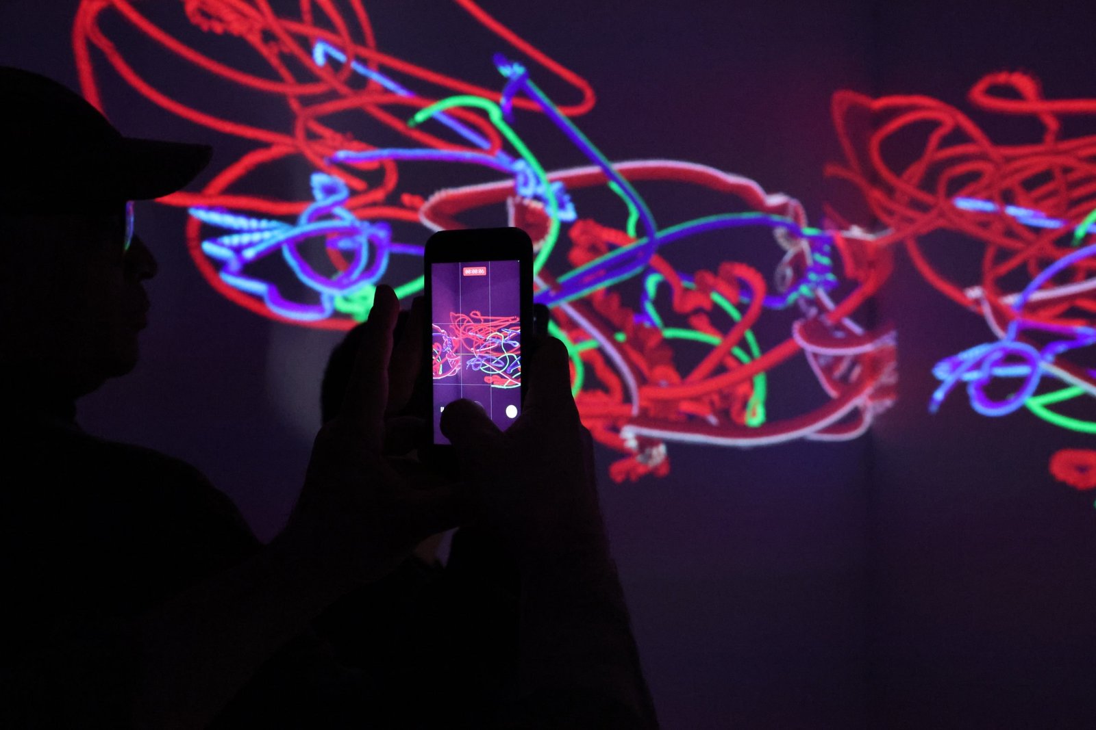 The interaction begins with an everyday gesture: the selfie. Each photograph taken during the exhibition is integrated into the system and transformed into digital pigment, breaking down into light and trace to generate a potentially infinite line. The work does not represent the audience: it is built through their presence.